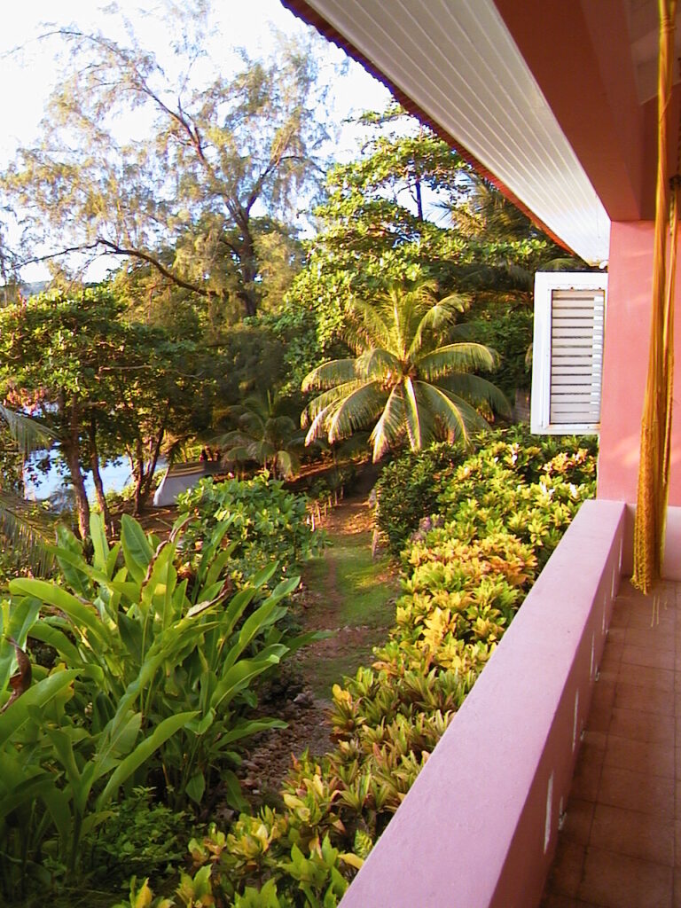 Step out from a patio and be just steps from the gardens and terraces abundant with fruit bearing trees, coconut, ackee, and banana.